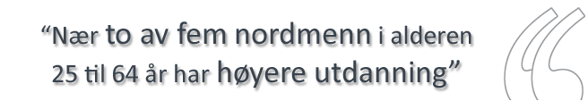 Norge er ett av de land i verden med høyest utdannet befolkning. Nær to av fem nordmenn i alderen 25 til 64 år har høyere utdanning. Det bringer oss opp i toppsjiktet i OECD. Rimeligvis er ambisjonene våre rettet mot å skape høykompetansearbeidsplasser. Det er produkter og tjenester med stort kompetanseinnhold vi kan konkurrere på internasjonalt. Det er disse som tillater vårt høye lønnsnivå.